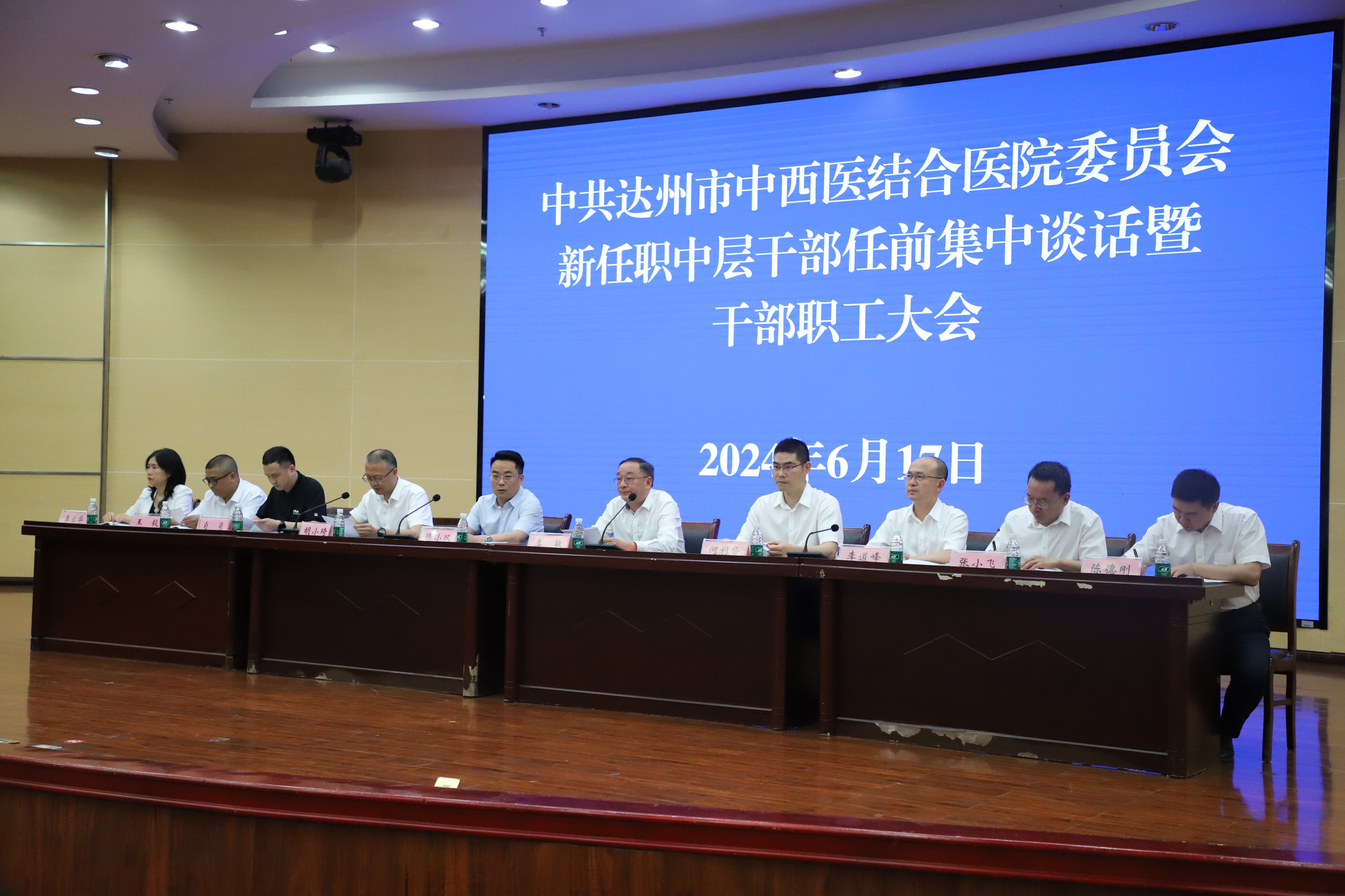 为了进一步加强医院内部管理,提升中层干部的领导力和执行力,6月17日,我院组织召开新任职中层干部任前集中谈话暨干部职工大会。市卫生健康委党组成员、副主任陈小双出席会议并讲话,医院党政领导班子成员、退居二线老同志代表、党总支书记、临床医技门诊科室正副主任及正副护士长、职能科室及群团组织正副职以及新提拔的中层干部参加会议。